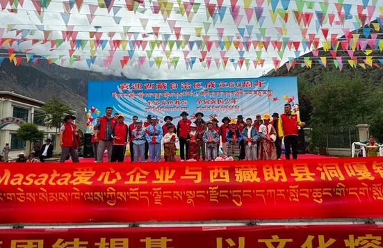 在洞嘎镇中心小学,Masata作为爱心企业代表,参与了学校组织的“民族团结一家亲”文艺汇演。孩子们身着民族服饰,表演了地方特色的歌舞节目,展现出新时代西藏少年儿童的精神风貌。企业志愿者也融入其中,与学生们一起参与游园活动,在轻松愉快的互动中建立起真挚的情感连接。