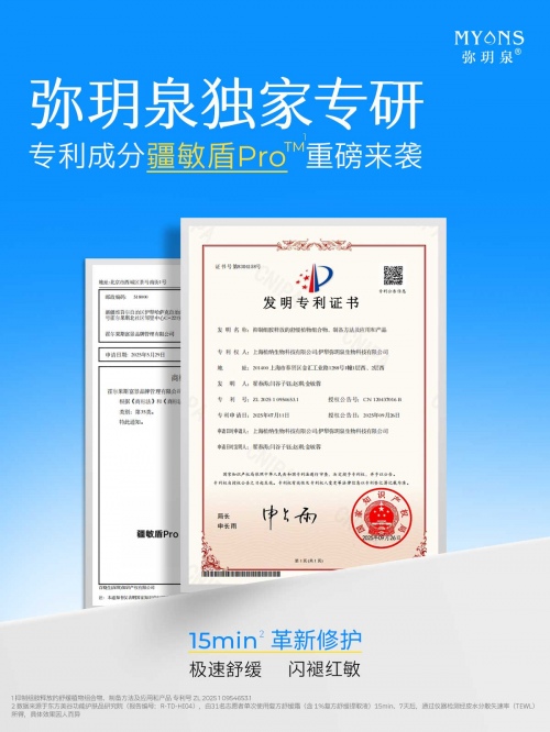 在此形势下,品牌唯有依托真实有效的成分与经得起验证的科研实力,方能构筑产品核心竞争力。作为长期深耕敏感肌领域的国货品牌,弥玥泉基于对敏感肌发生机制的深入研究,近日推出独家专利成分“疆敏盾Pro”,致力于为反复敏感提供系统性解决方案,推动行业迈入“精准干预、高效修护”的新阶段。