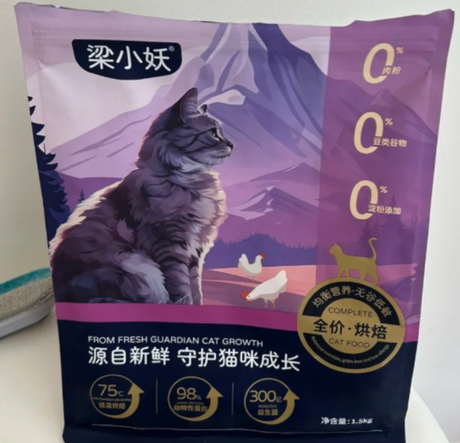 看配料:配料表前3位必须是明确占比的鲜/冻肉,拒绝不明肉粉、边角料,动物性原料占比不低于70%;肠胃敏感或过敏体质的猫咪,优先选择无谷、低敏配方。