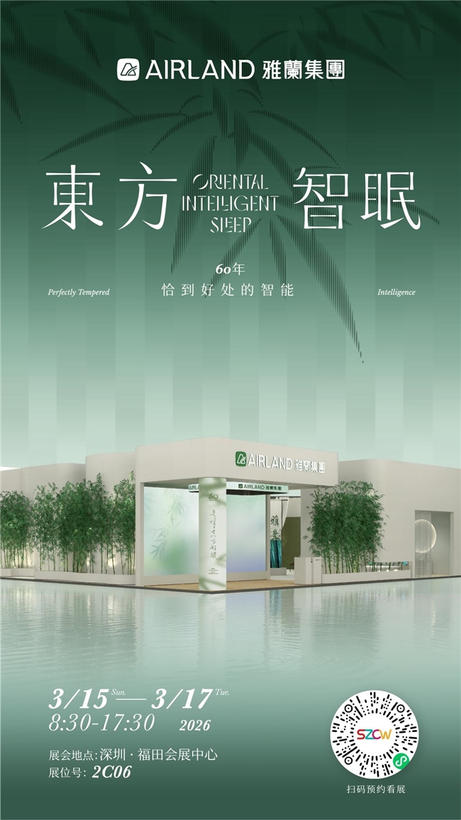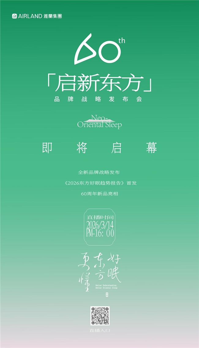 而这份对睡眠美学的探索,对东方好眠的深耕,还将迎来全新的焕新篇章。2026年3月14日,雅兰将在深圳·大梅沙万科中心启幕“启新东方——雅兰60周年品牌战略发布会”,品发会后还将重磅亮相3月15-17日的深圳国际家具展,持续展现东方睡眠创新成果。在盛会上,雅兰将正式发布“60年,更懂东方好眠”品牌核心主张,以更深度的东方睡眠研究、更贴合国人需求的战略成果,持续探索睡眠的美好可能,邀你一同见证东方好眠的全新启程。
