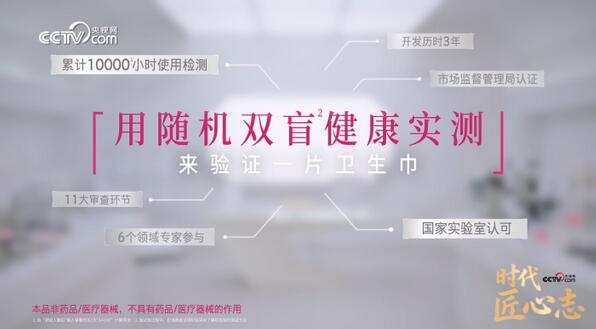 它通过了药监局资质认定机构的认证,采用了目前卫生巾品类里少有的高标准——随机双盲实验,让真人受试者在完全客观的环境下验证效果。