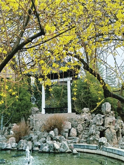 连翘:“千步连翘不染尘,降香懒画蛾眉春”。连翘为落叶灌木,小花四瓣,因形态如古代的连车和翘车,故得此名。早春先叶开花,且花期长、花量多,盛开时满枝金黄,芬芳四溢。