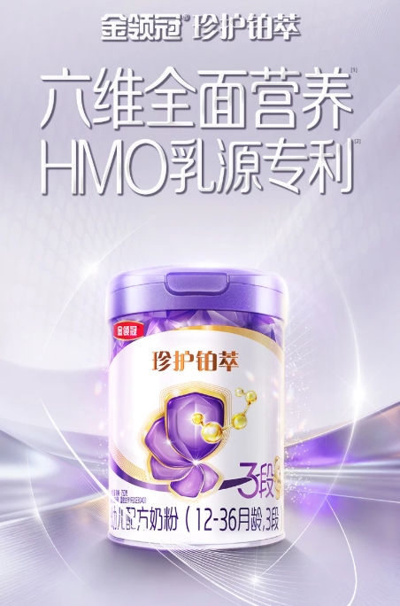 除了为宝宝带来新鲜的营养品质。前段时间,金领冠珍护铂萃还完成了配方升级,核心亮点在于其含HMO(2’-FL)专利[1]的36倍超高含量乳源HMO,种类达到9种,全面融入六大营养维度,与其他营养成分协同作用,为宝宝提供全方位守护。