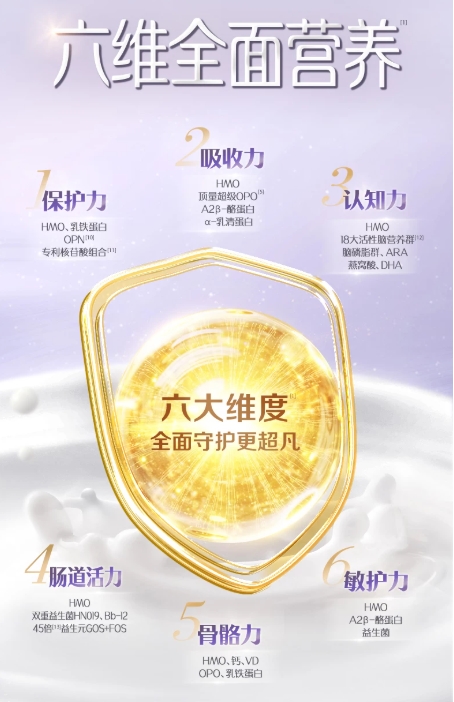 其二,配方科学多元,聚焦宝宝吸收、免疫、肠道、大脑发育等核心需求,通过精准配比的营养成分,实现多维守护。